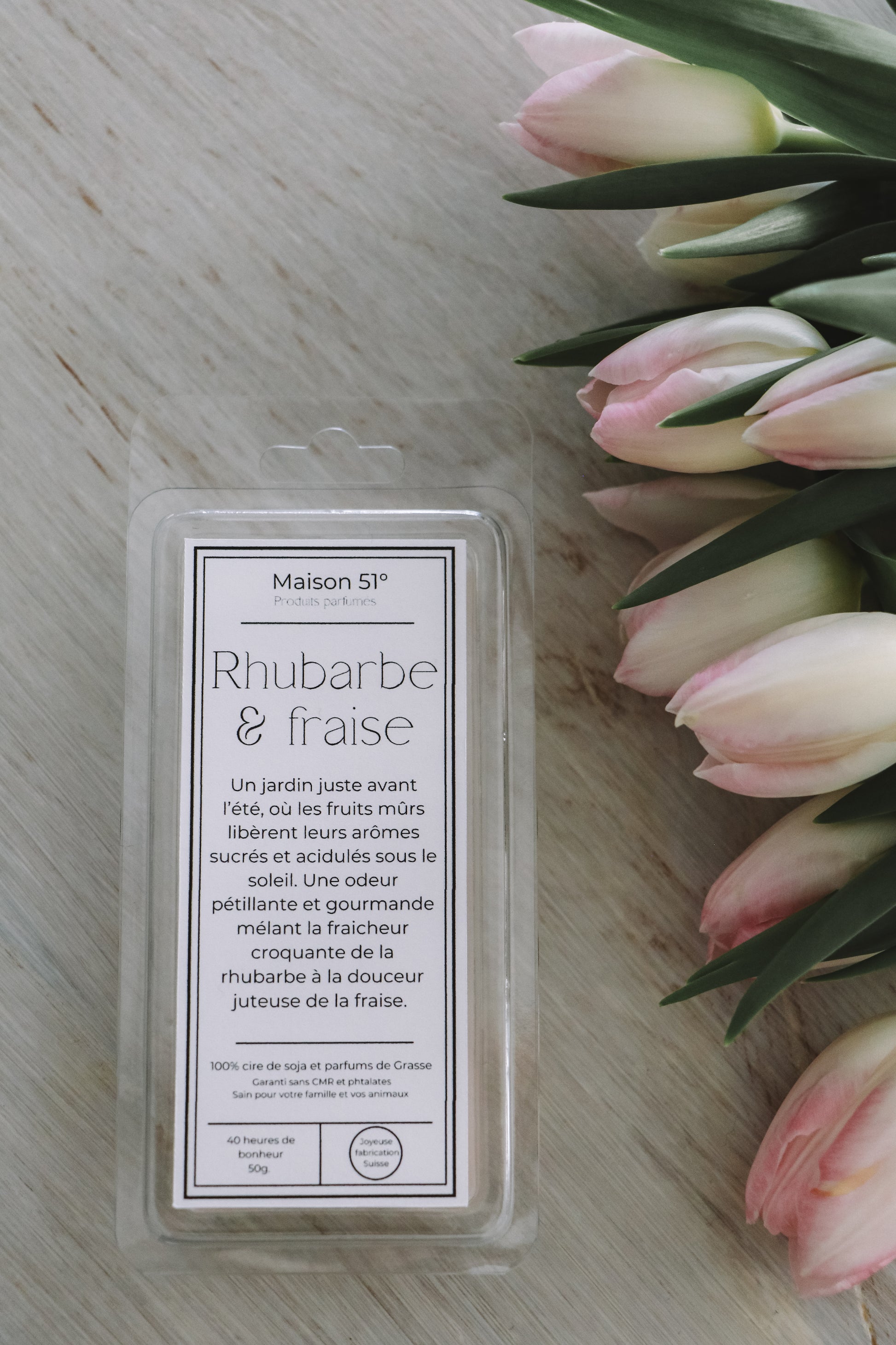 Un jardin juste avant l’été, où les fruits mûrs libèrent leurs arômes sucrés et acidulés sous le soleil. Une odeur pétillante et gourmande mélant la fraicheur croquante de la rhubarbe à la douceur juteuse de la fraise.